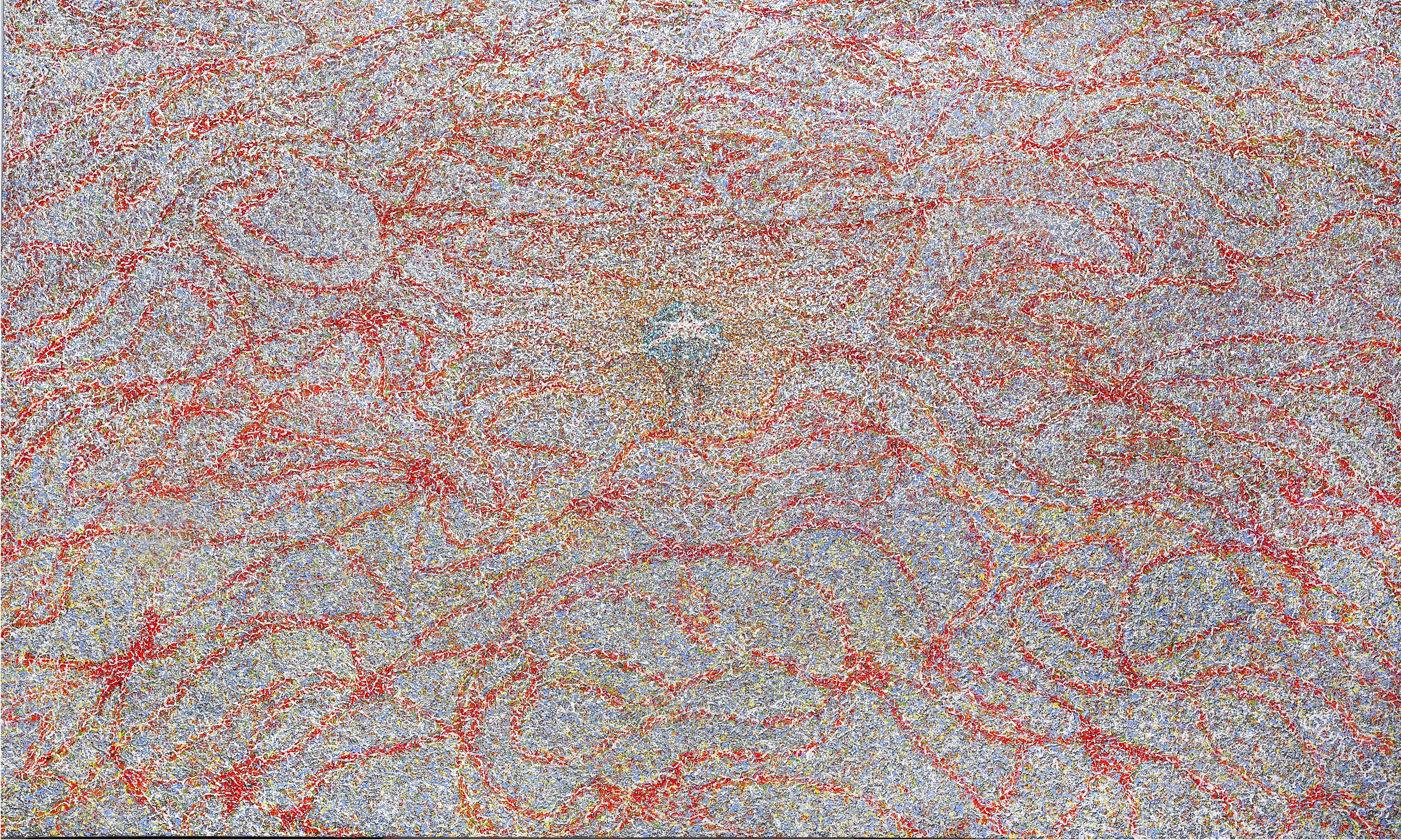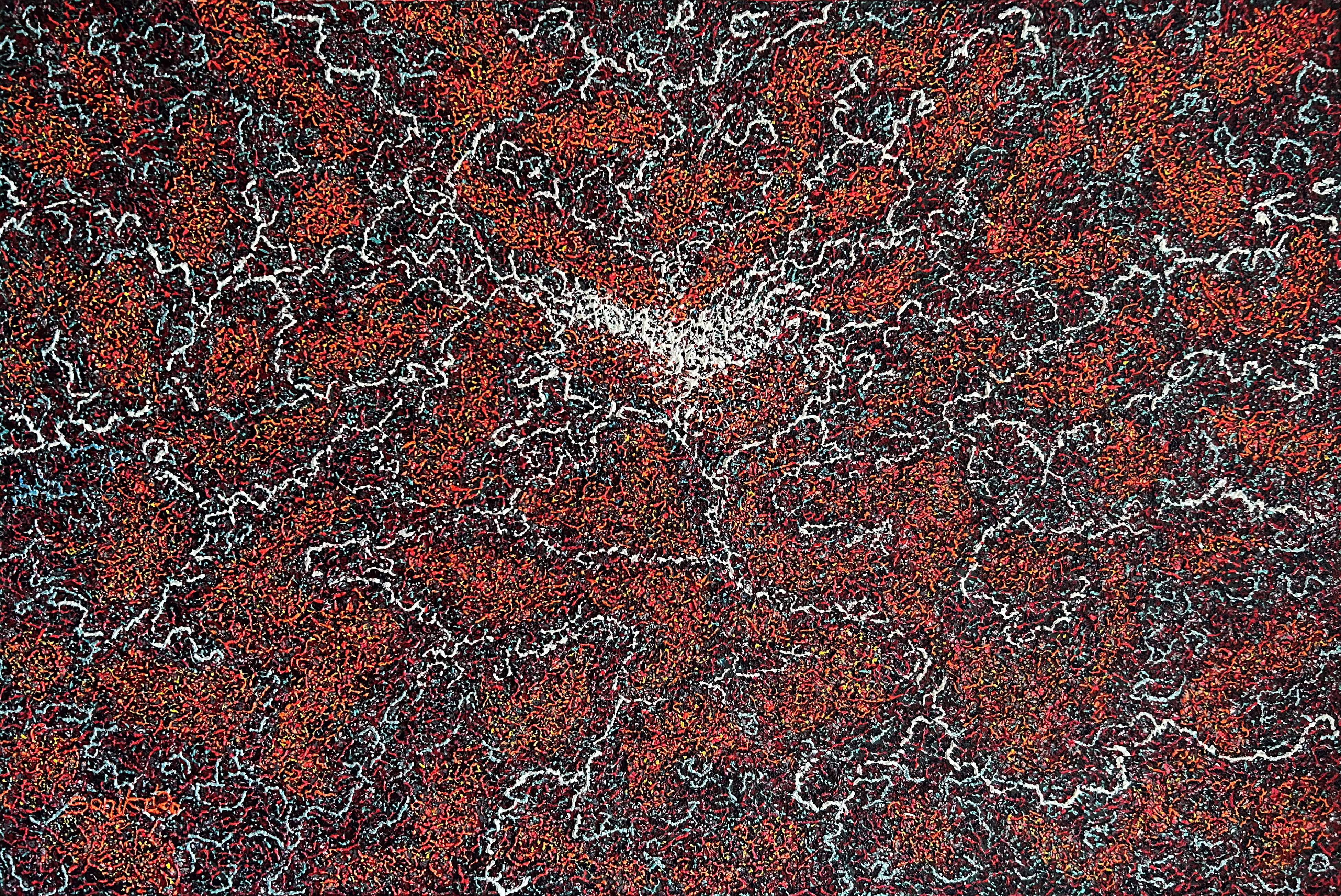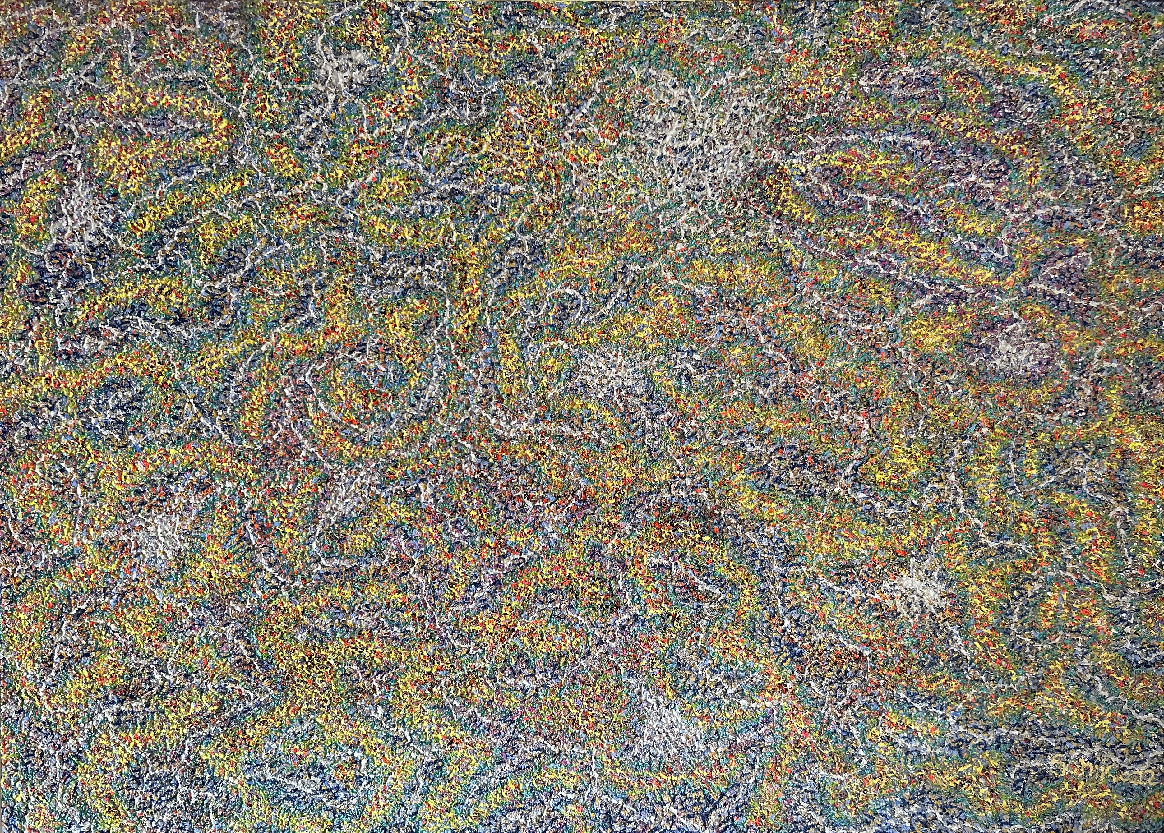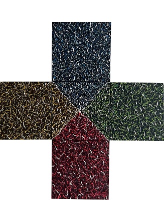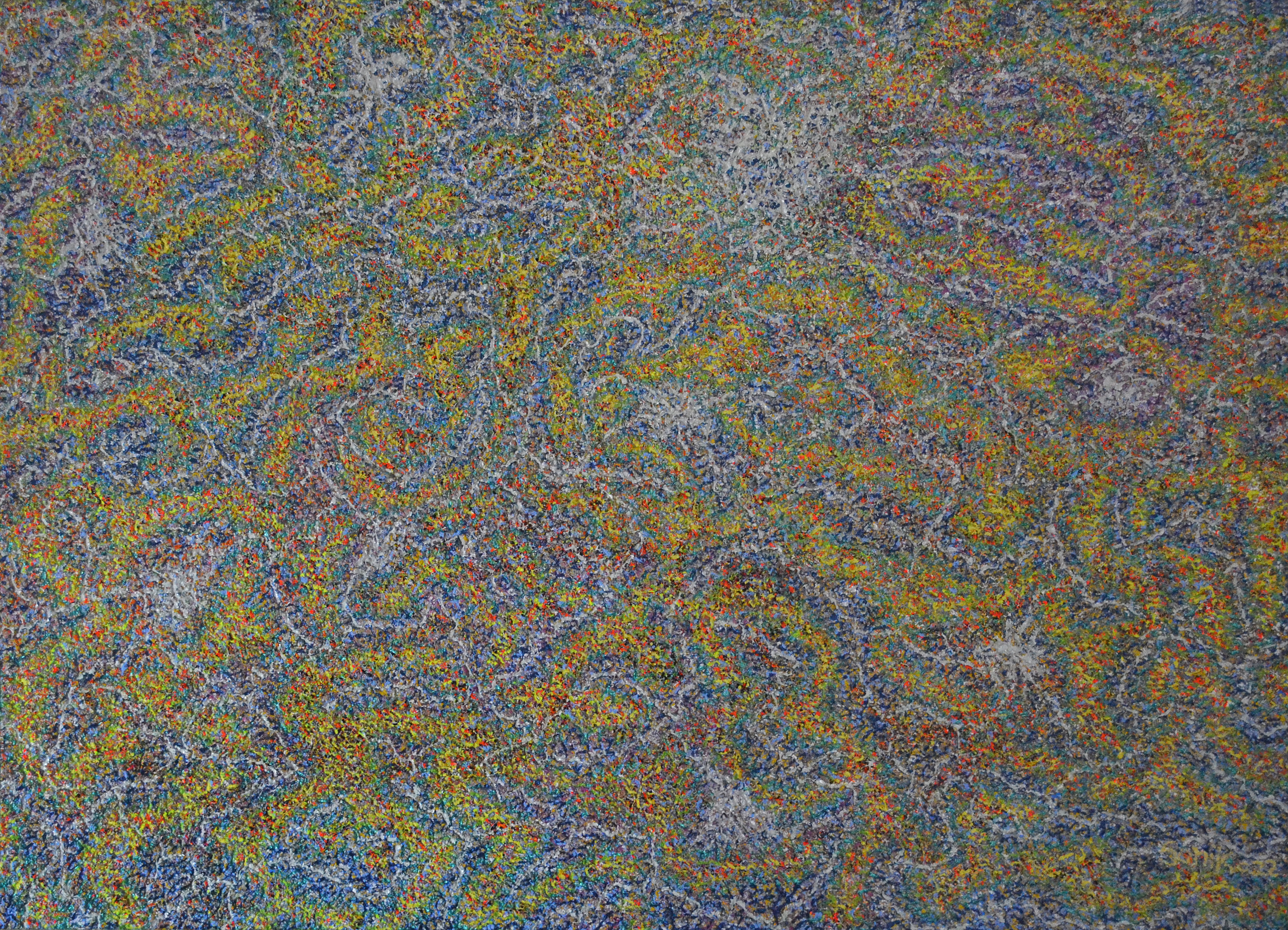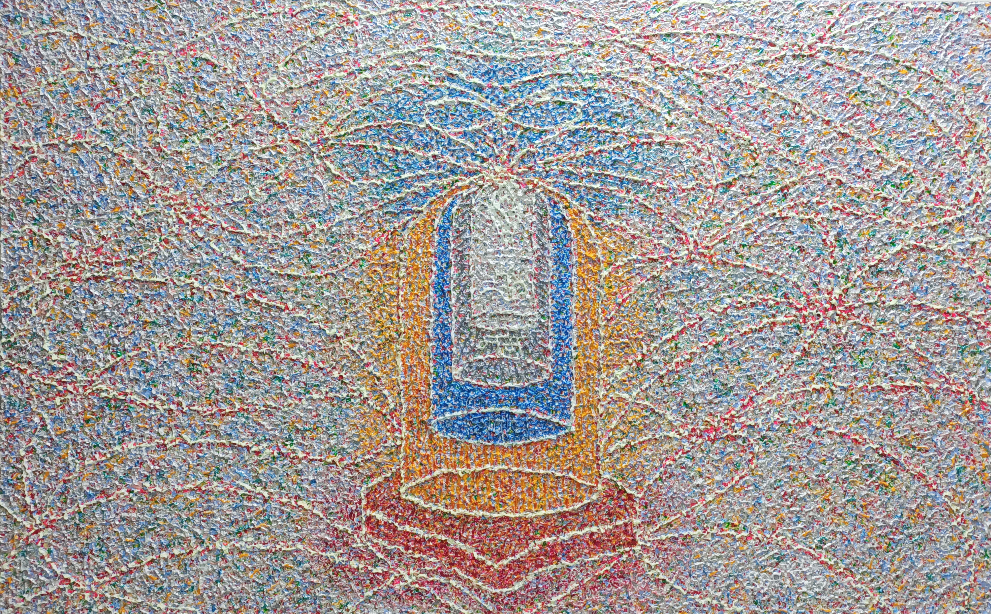 What makes these artworks unique is that they are an eventful expression of inner life- the spiritual cosmos inside a human being. These are visual images of the spirit which is countless tissues of light. It is here the cosmic beams condense on the canvas to dance over forms unconcerned about joining the dots and traversing from formlessness to form. 'While painting, I remove myself from the stage itself and let the Divine play for me.' This act transports the painter to a place within, which most people yearn to understand and reach to. It is commonly believed that to understand the world is far more important than to understand yourself. These paintings are arresting flashes of insight, an unabashed declaration of our inner radiance: 'Of what use is knowing the ends of the universe, if we cannot understand the microcosm of our Self. AtmanamViddhi- Know Thyself.'