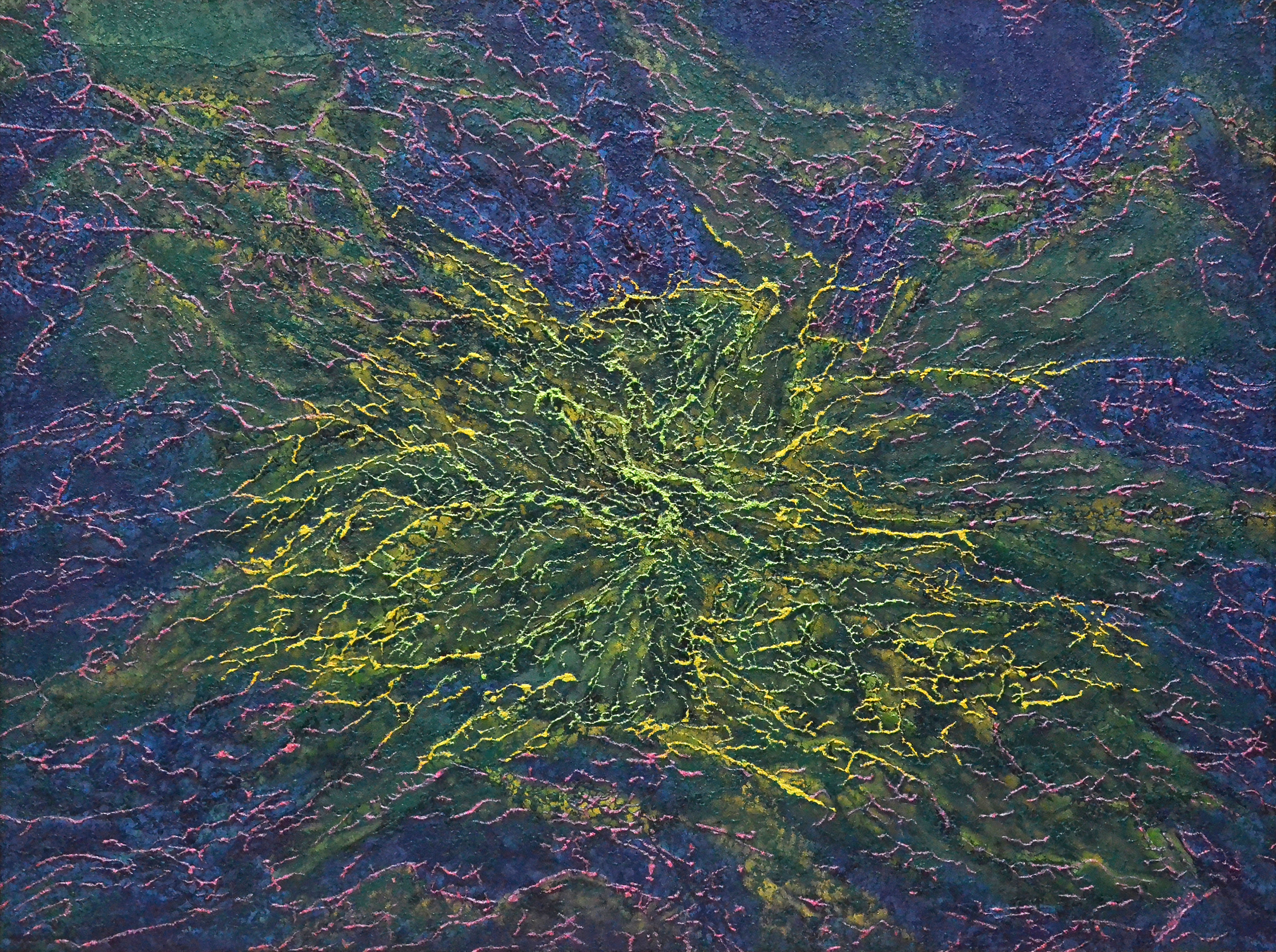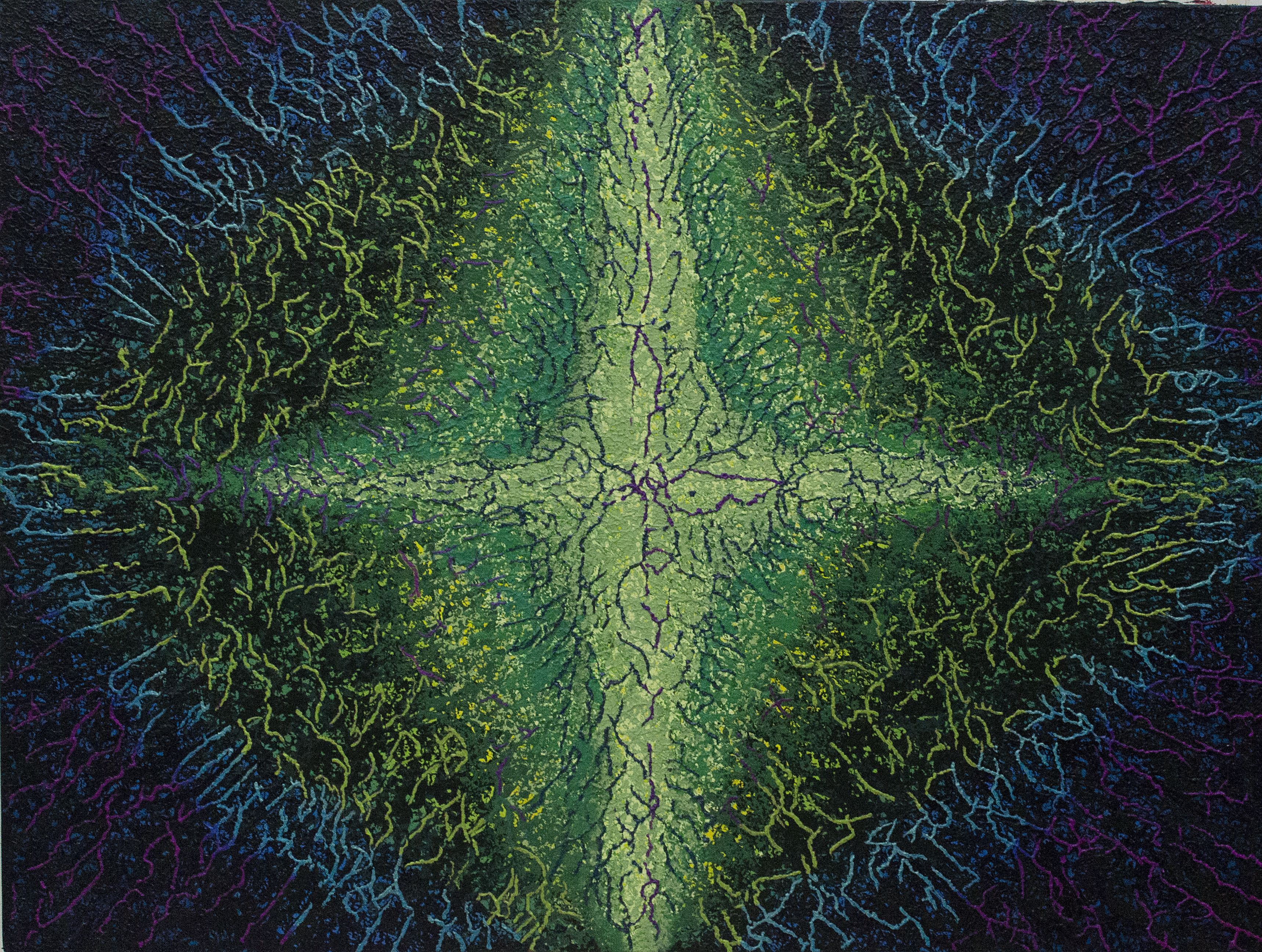 The 'Radiance of Cosmic Consciousness' possesses a universal language, a new story to tell with an innovative technique not intimidated by the past. For over seven years as an artist I have been looking inwards doing my sadhana at my studio evolving and upgrading my technique to create these mystical paintings that take you on a spiritual journey from 'Who Am I to Who I Am.'
