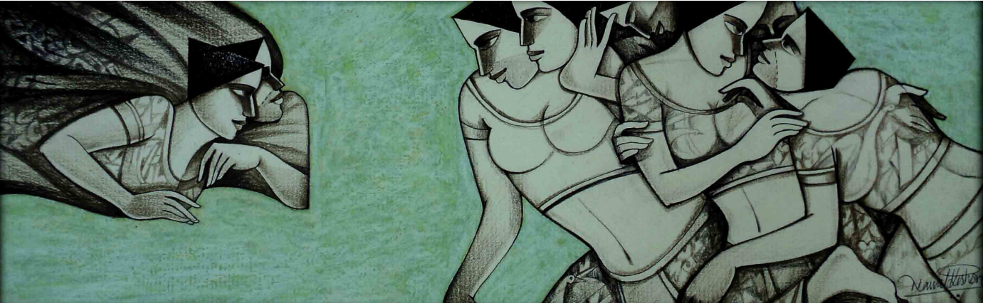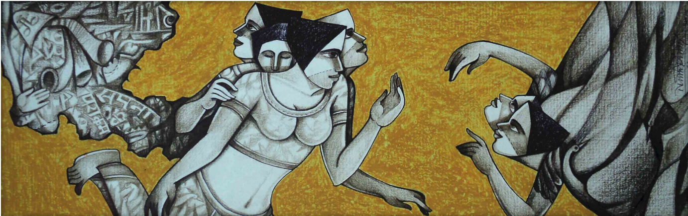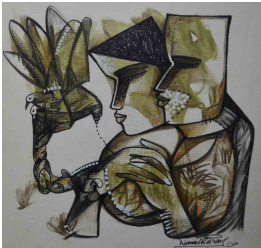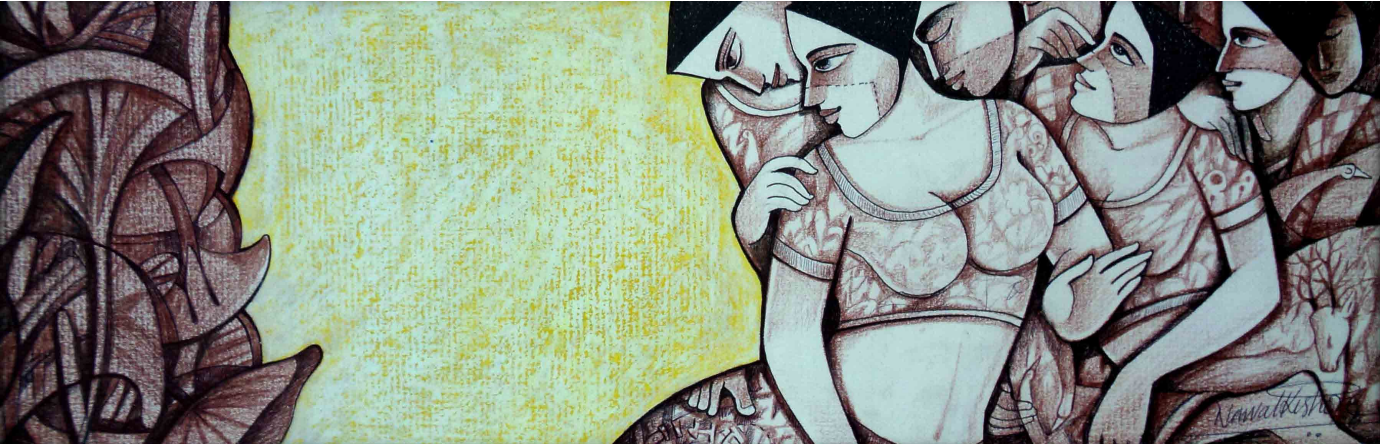 Divine Encounters is about human relationships & spirituality. The artist is grateful for his humble upbringing which remains in its purest form as he expresses on a canvas or a paper. Nawal Kishore, born in a family that made jewellery and sold, creativity was in his genes – “my parents also wanted me to be an artist”, shares Nawal.