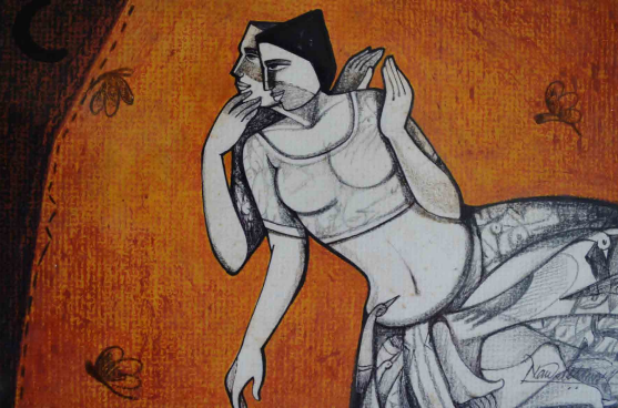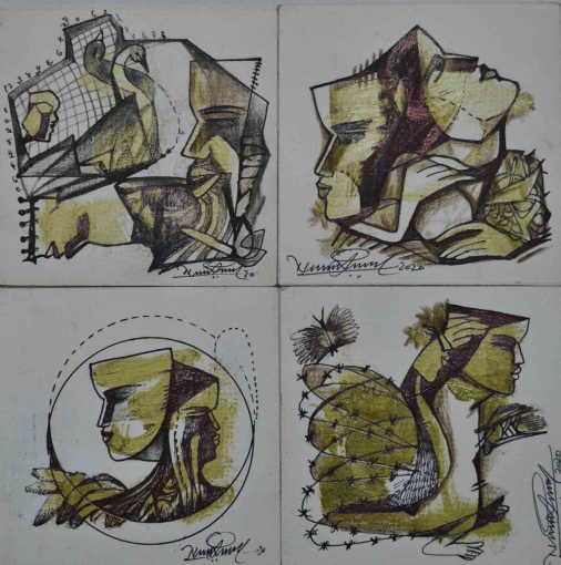 He recollects of the days when he would paint the cinema posters by hand on plywood boards, iron sheets and cinema halls walls, unaware about the fact that ‘art’ was also a stream that was being taught in colleges. In 1995 he joined Lucknow College of Art and went ahead to finish his BFA and MFA, under the guidance and mentorship of Prof. B. N. Arya. Nawal’s works were greatly influenced by Prof. Arya and the gouache techniques which he experimented on canvases and paper by introducing new elements and geometrical forms. With keen observations and passion, Nawal is able to bring out emotions in each artwork that portrays the diverse kinds of love. In 2001, when he received the Garhi Research Grant, he was overwhelmed and felt more encouraged and sure about the path he had chosen. The artist acknowledges his learnings from his guru Neeraj Goswami, who’s hand-holding and guidance at every stage, helped Nawal to improvise and mature as an artist in his growing years.