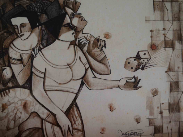 The strong control in his works is a result of consistent practice and zeal, having worked on a ‘Series on Water’ - captured the widowed women in Banaras gathered on the banks of the Ganges who lived in pitiable conditions in search of the divine. ‘Beggar Series’ evoked feelings of empathy. The Series – ‘Revolution in the Sky’, depicted freedom at large. The ‘Nayaka Series’ - displayed the intense emotions of the actors on the stage and of those on the backstage. Then the ‘Life Series’, which conveyed the importance of basic things like Tap or a Key. A tap without water and a key without a lock holds no significance individually, the complimenting of each other is similar to even the smallest relations amongst human beings that matter. In the Divine Love Series, the artist emphasizes on pure love that is immortal which could be between a brother & sister, between two brothers, between two sisters, friends, lovers or as pious as between Hanuman & Sri Ram.