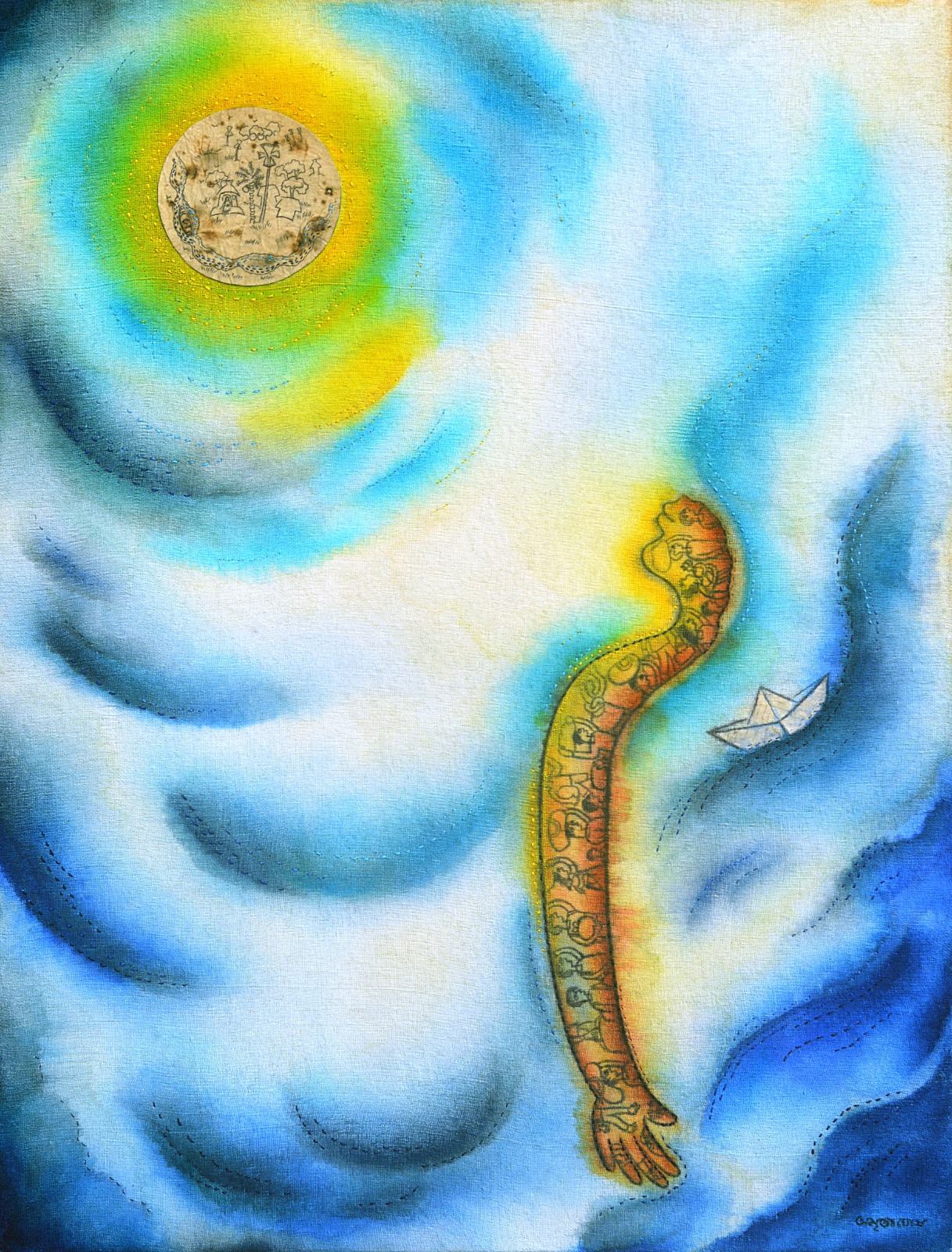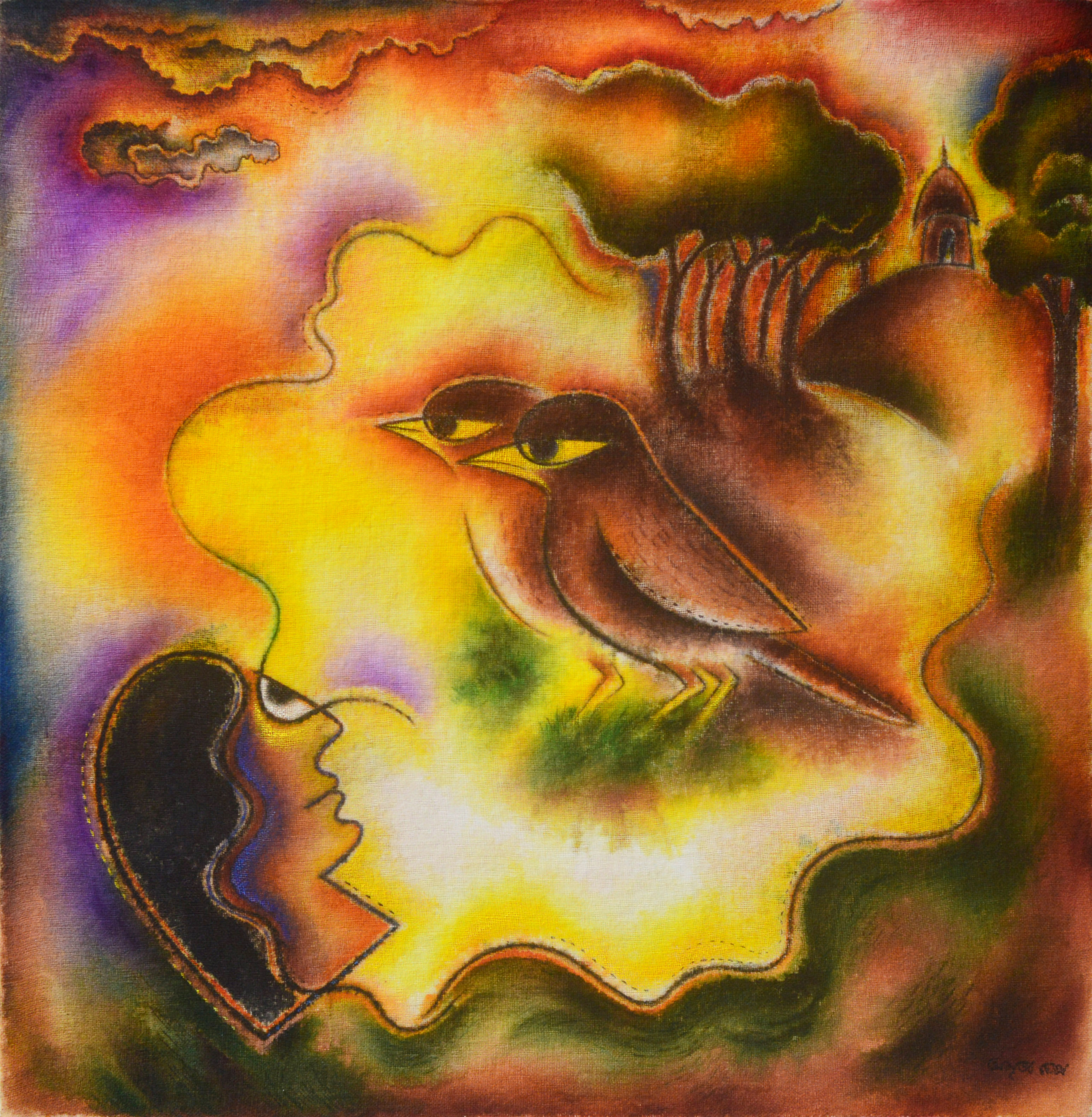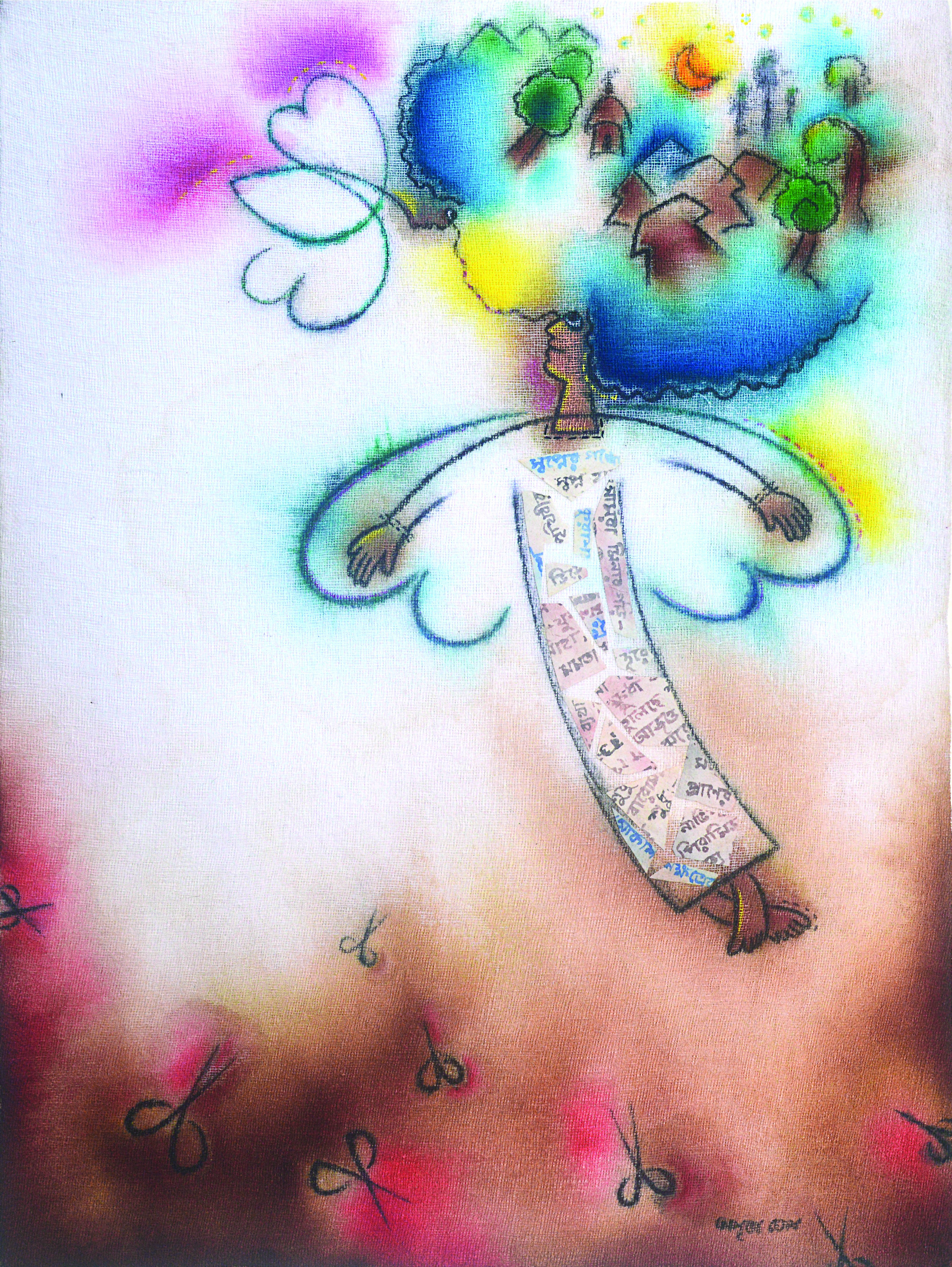 Amrita Ghosh, born in Asansol, West Bengal, in 1984, has received her Master of Fine Arts in History of Art from Kala Bhavan, Visva-Bharati University, Santiniketan in 2012. An Indian contemporary artist, Amrita is known as much for her evocative paintings rich with symbols and motifs as for the brilliant and vivid colour palette and the vast variety of mediums and materials she deploys to express the emotional content of her work.