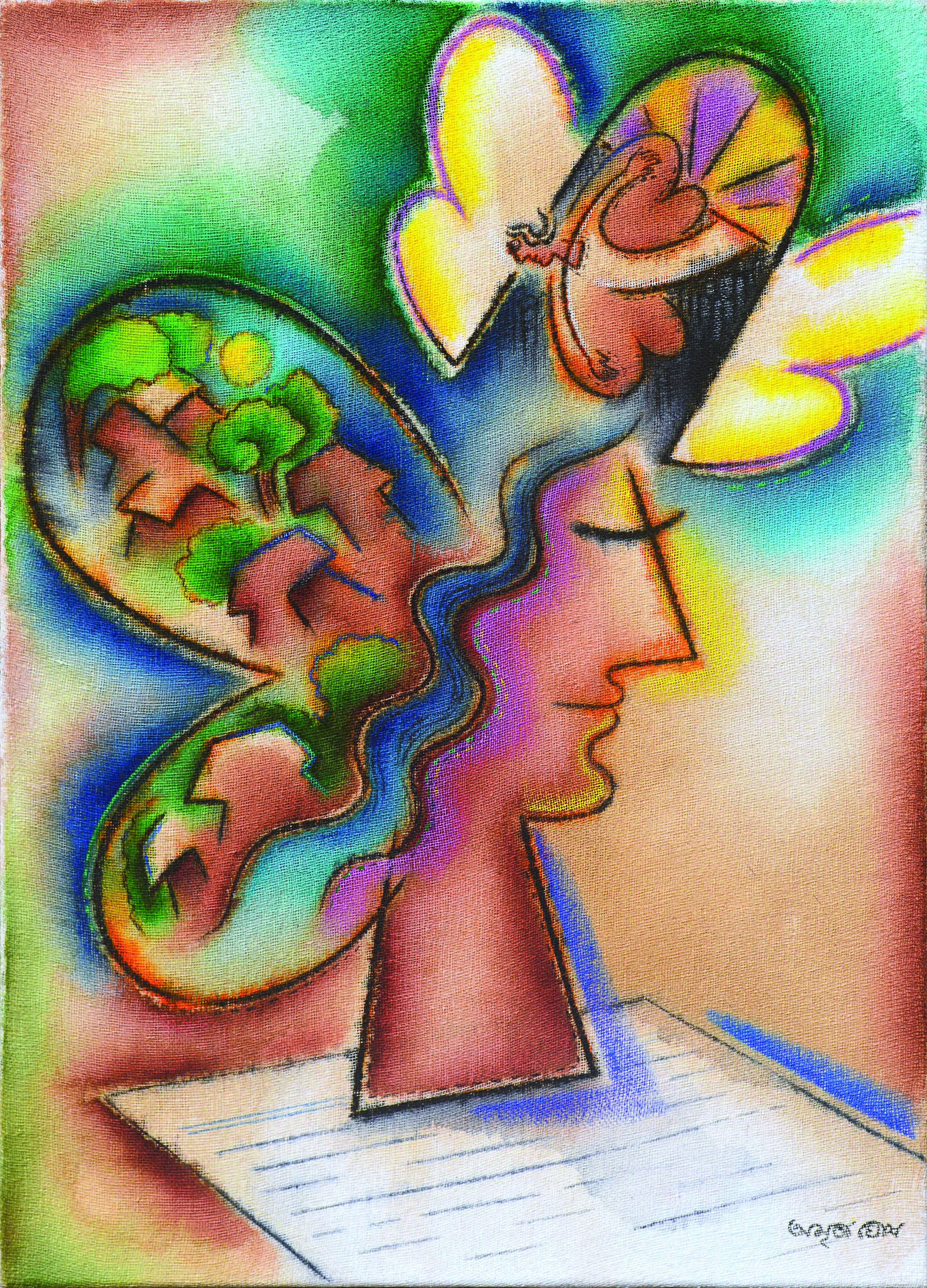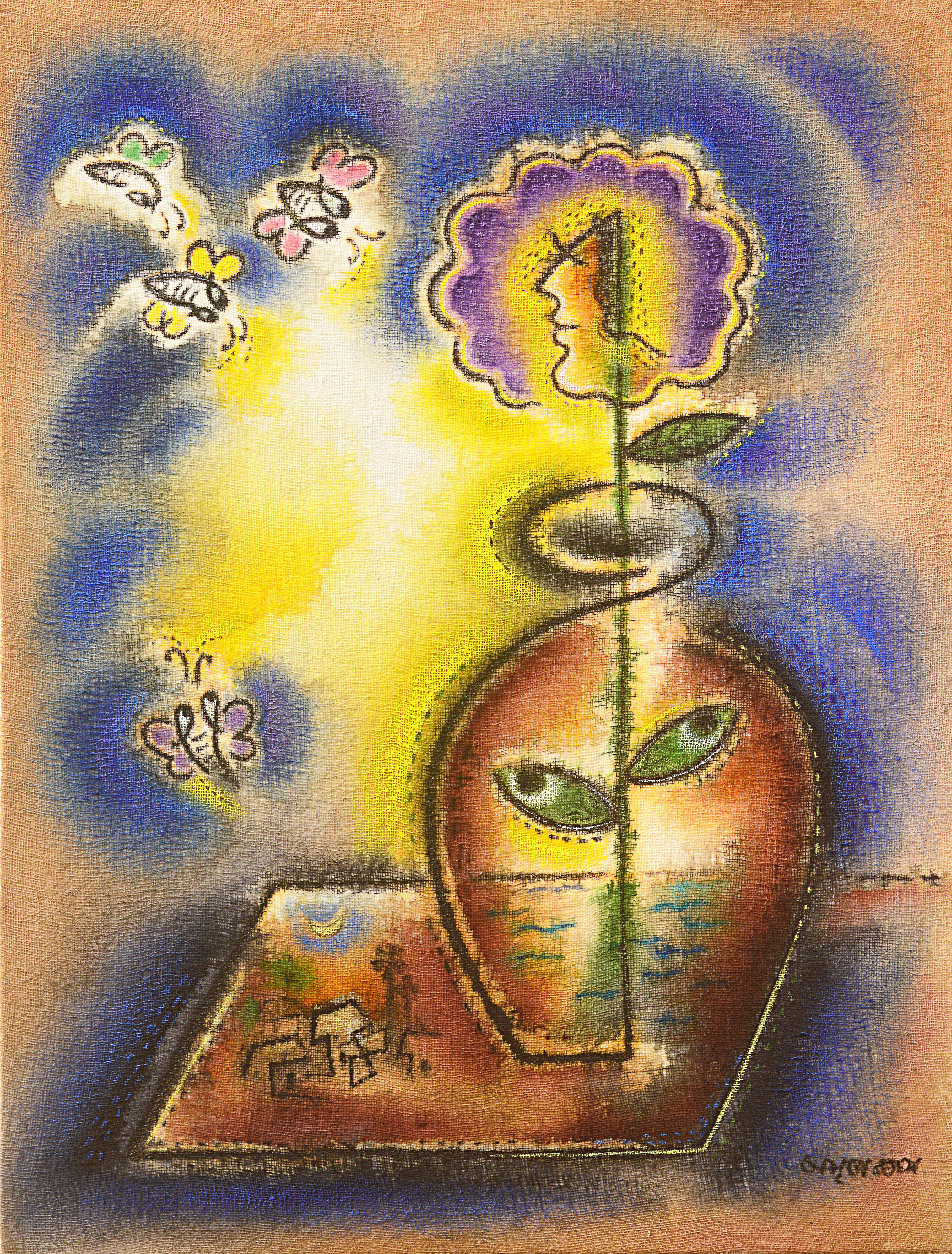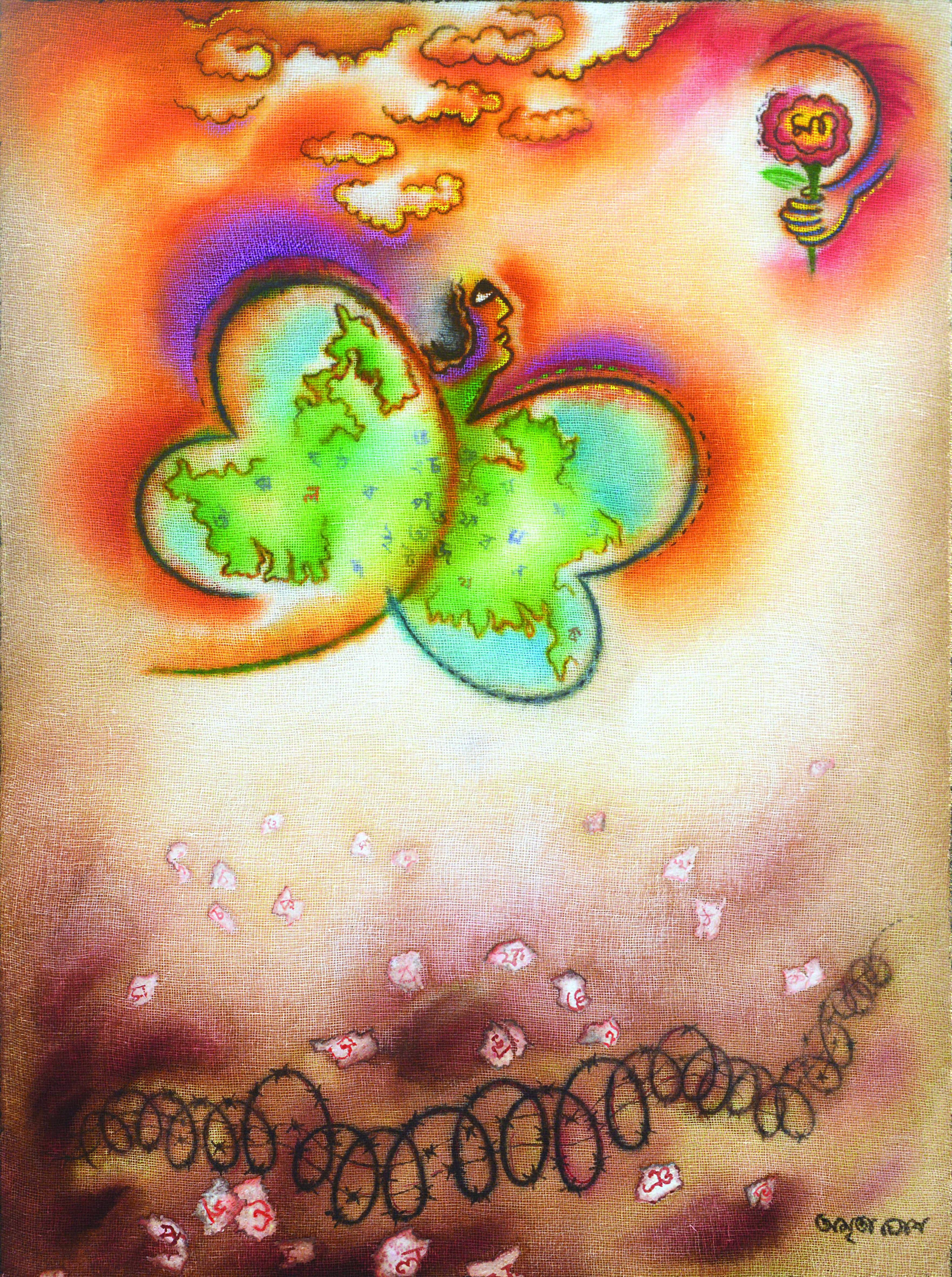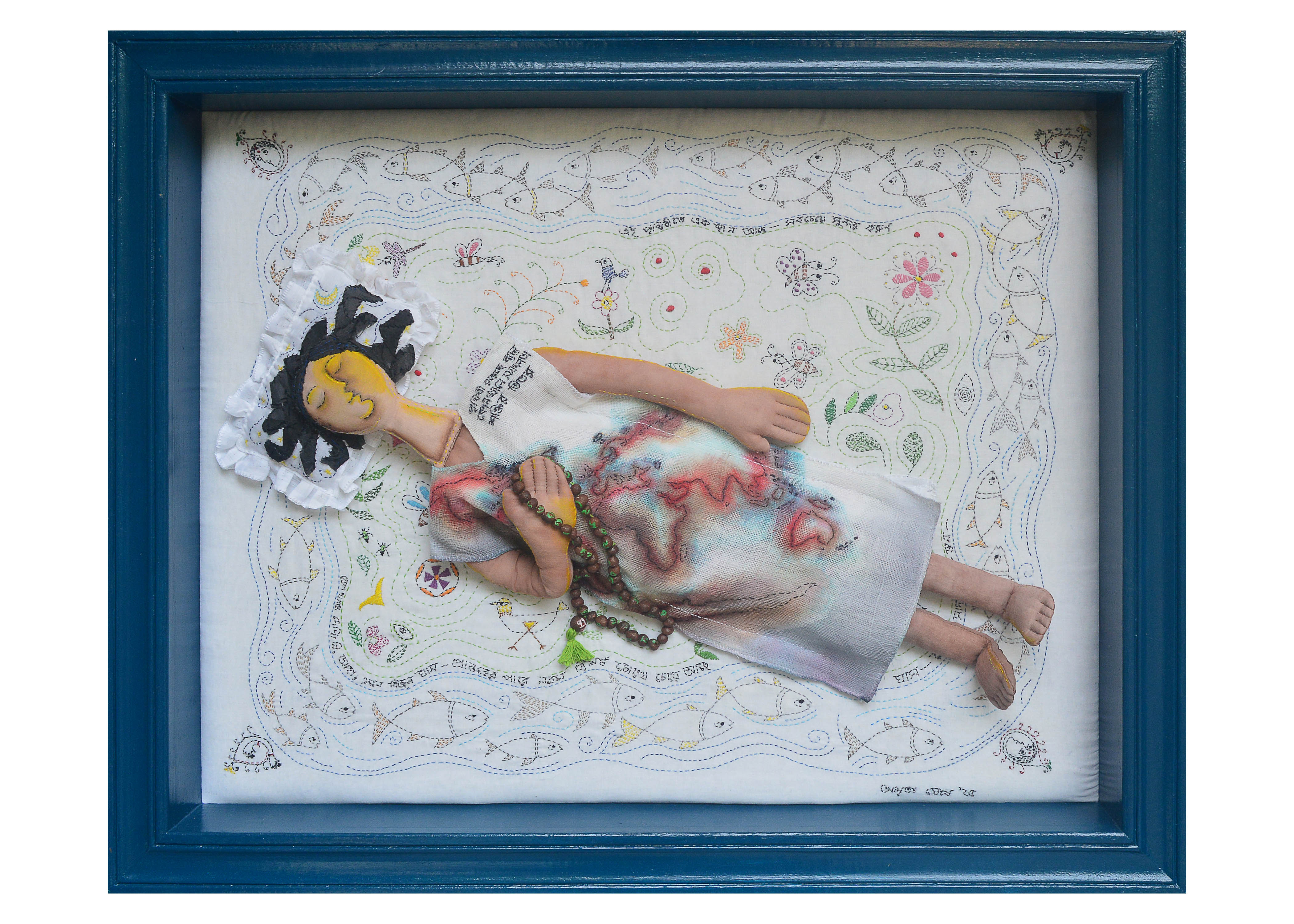 Amrita Ghosh, born in Asansol, West Bengal, in 1984, has received her Master of Fine Arts in History of Art from Kala Bhavan, Visva-Bharati University, Santiniketan in 2012. An Indian contemporary artist, Amrita is known as much for her evocative paintings rich with symbols and motifs as for the brilliant and vivid colour palette and the vast variety of mediums and materials she deploys to express the emotional content of her work.